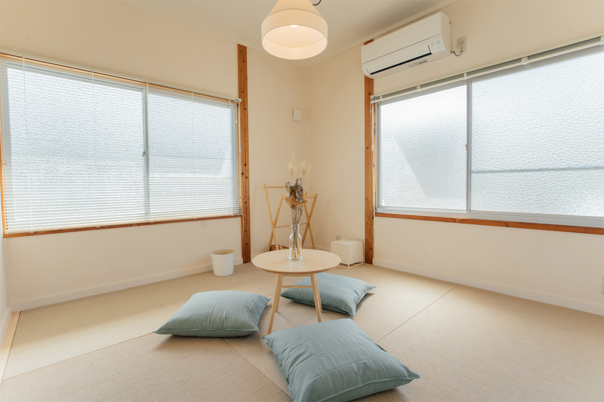 今回のプロジェクトでは、移住者が生活を構築していく母屋と、彼らが宿主となりリスティング運用していく離れの両棟に対してリノベーションを実施した。入居者はもちろん、訪れる宿泊客にも四万十町のことをより感じてもらえるよう、内装に地場産材や伝統的な工芸品を取り入れている。
