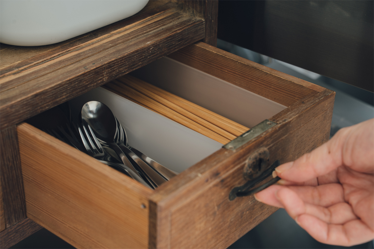 「住空間に一歩足を踏み入れることで、四万十町の自然に抱かれながら人間らしい暮らしに立ち返って欲しいという願いを込めて、“くらしを変える、くらしに帰る”というフレーズをコンセプトに設定しました。具体的には周辺地域のフィールドワークを実施し、地元工務店や先輩移住者たちに話しを伺いながら、われわれ良品計画の視点をもって土地の資源を掘り起こしています。四万十檜などはふしを活かしたまま活用しており、暮らしの中で飴色に深まっていく経年変化も楽しんでいただけたらと思っています」