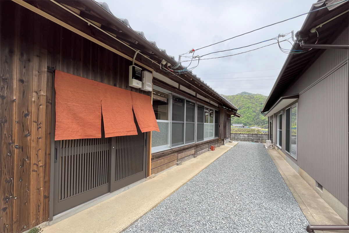 中間管理住宅とは、移住・定住促進のため、空き家などを整備して良心的な家賃で希望者へ賃貸するもの。本物件は、敷地内に母屋と離れ、2棟の建物があり、母屋を暮らしの場、離れを民泊施設として運営できるよう整えたあと貸し出すことで、借り手はあらかじめ生業を得た状態で新天地での暮らしをスタートできるため、移住へのハードルを下げる仕組みのひとつとして注目されている。