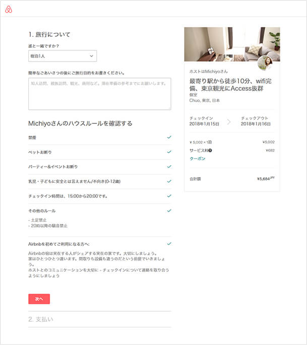ホストとのやりとり決済画面にはホストとゲストがメッセージをやりとりできる機能があります。