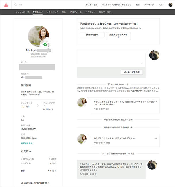 メッセージ機能でホストとやりとりして、以下の点を確認しておきましょう。