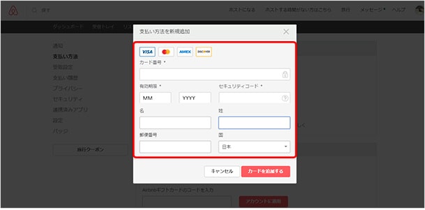 Airbnb(エアビーアンドビー)の支払いには以下が利用できます。