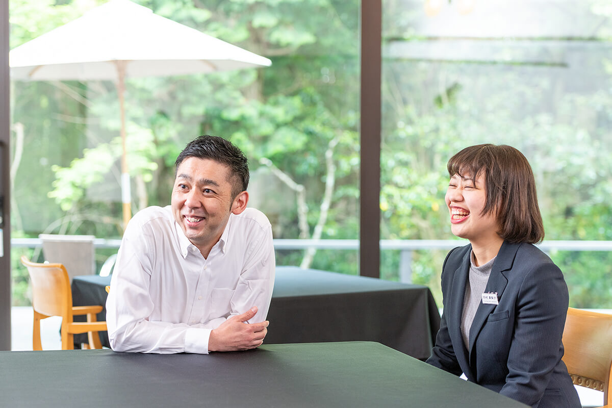 「海外からいらっしゃる皆さんは、日本文化を学ぶことに熱心です。お食事は、地元の食を使ったり、日本ならではの調理法で作ったりと、ここでしか味わえない料理を提供しています。そのため、ただ料理を出すだけではなく「この季節しか取れない山菜です」、「この牛肉は箱根紋次郎という名前です」または「これは日本にしかない『生麩』というもので、グルテンでできています」など、眼の前にあるものの価値や工程を伝えるように、拙いながらもできる限りの英語で説明しています。食材一つ一つを英語に翻訳し丁寧に説明し、日本のお客様と同じだけの満足を味わっていただけるように工夫させています。」(高山さん)