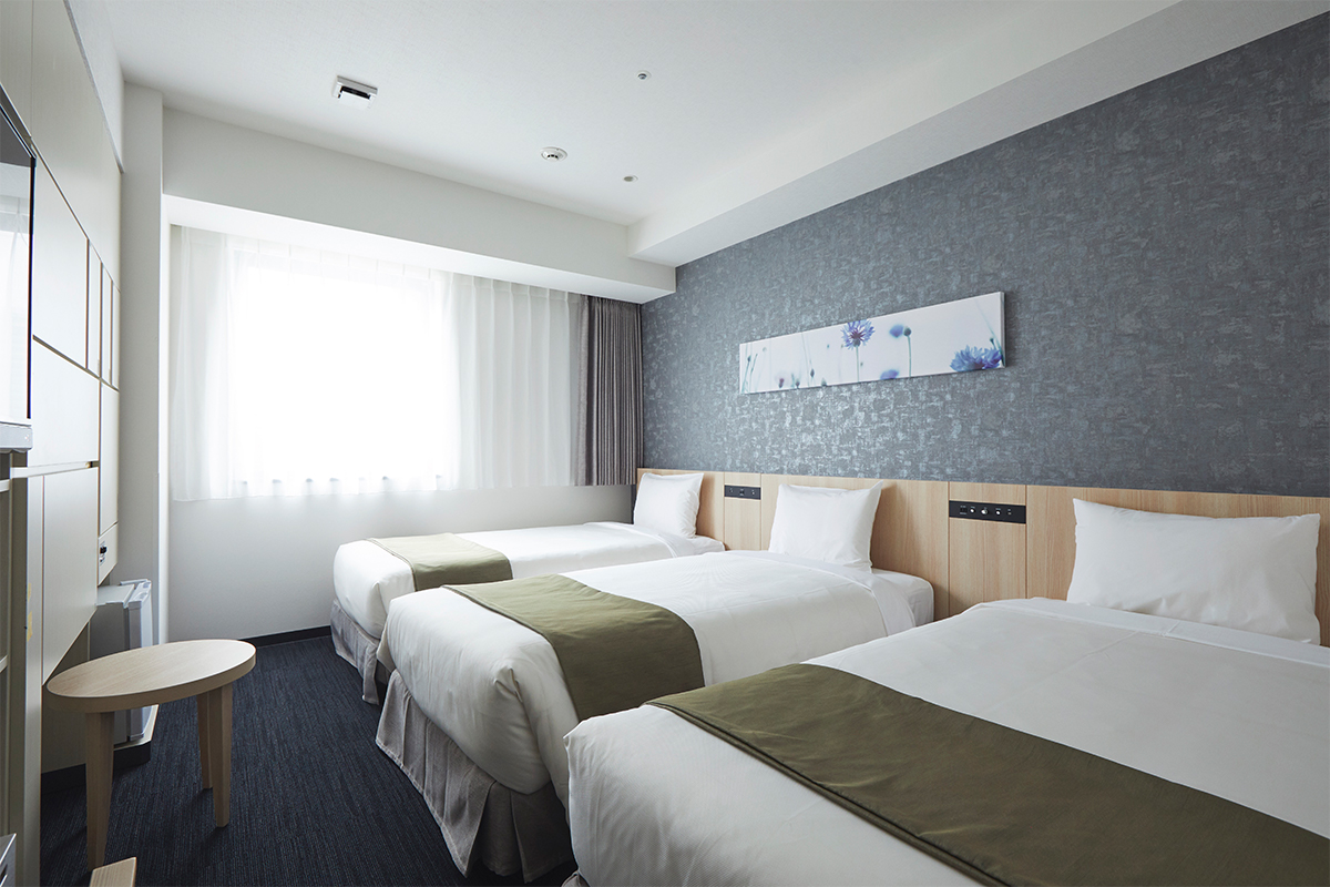hotel MONdayは3名以上のグループ向けの客室を中心に構成し、コネクティングルームも多数用意。インテリアをはじめ、設備やサービスにおいて日本文化を散りばめながらも、客室には布団ではなくベッドを導入するなど快適性も重視した。