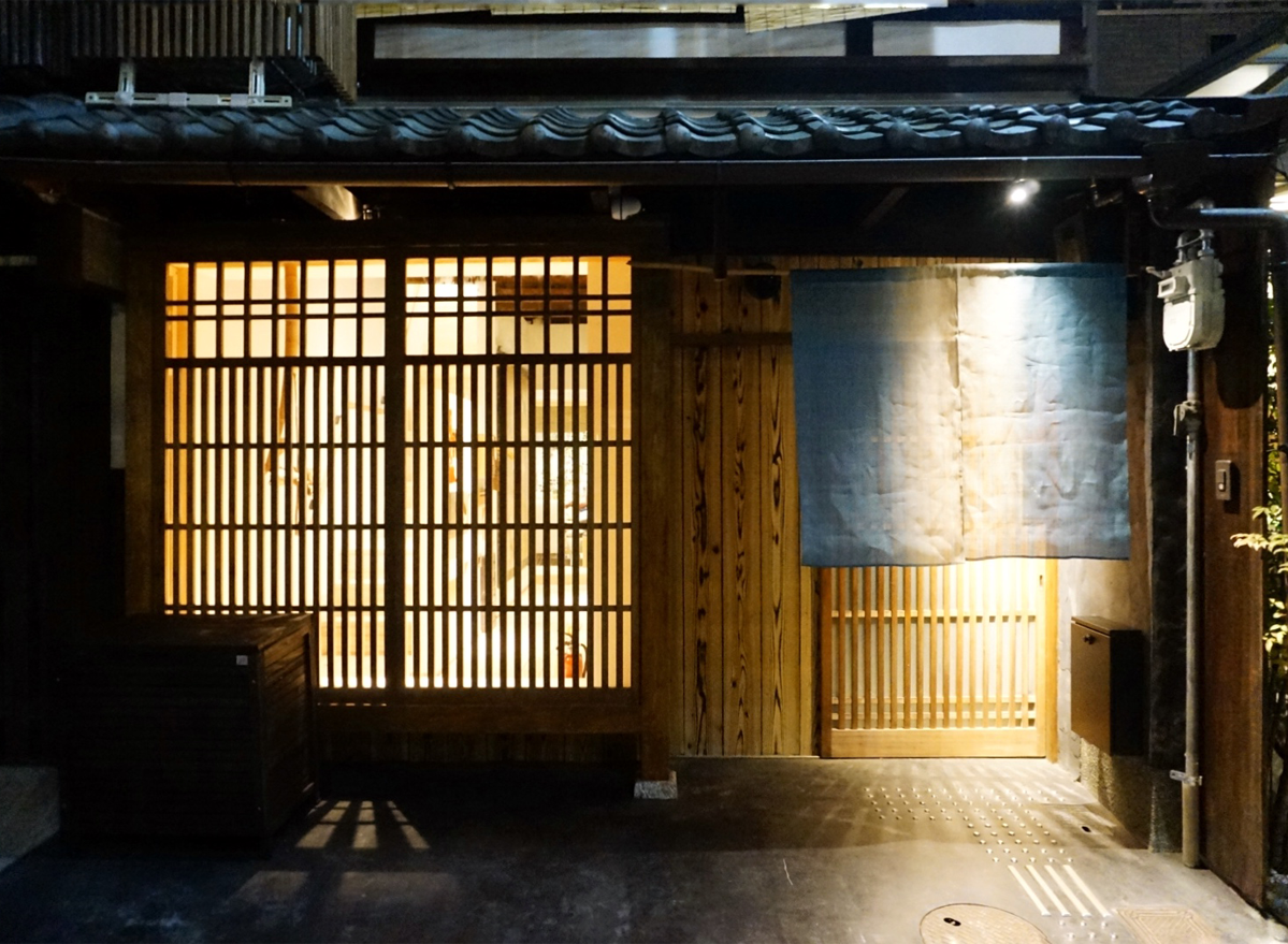 四条河原町や錦市場など京都随⼀の繁華街からほど近い路地奥に、その宿はある。築90年の京町家をリノベーションし、配された奥庭や隣接する寺を部屋から臨める京の⾵情あるリスティングだ。古物商の有資格者でマーケティングコンサルタントとして経験を重ねたYoheiさんと、⼀級建築⼠の奥様Naokoさんがタッグを組み、企画から設計、施⼯に⾄るまでを⼿がけた。