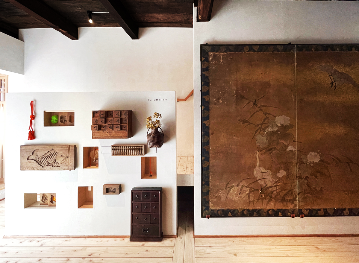 「私たちの宿では、伝統的な日本の建築空間や、階段箪笥をはじめとするアンティーク家具などを、⾒て、触れて、体感できるようにしています。“⼦どもと⼦ども⼼を忘れない⼤⼈が、⽇本の伝統建築やアンティークで遊べる宿”、というのが空間づくりのコンセプトです」とYoheiさん。