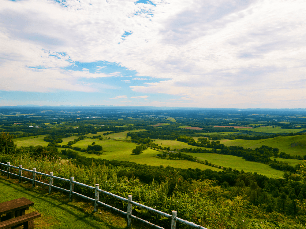 眼下に広がる十勝平野を眺めながら、移動の疲れをリフレッシュ! -