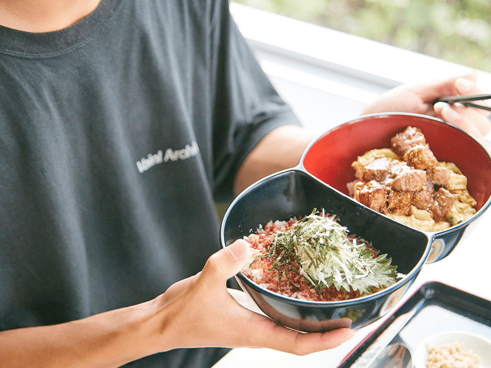 昼食は十勝清水町ならではのグルメがおススメ。3年連続で3年連続で北海道B級グランプリを獲得そして殿堂入りの「牛玉ステーキ丼」そしてふるさと納税の返礼品で好評の「牛トロフレーク丼」を一度に楽しめます。 -