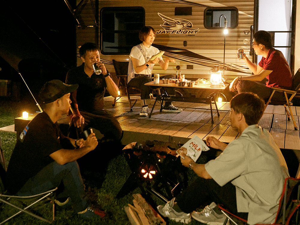 20:00自由時間夕食後は誰もいない円山展望台を独り占め。トレーラーハウスで、ゆっくり過ごすのもよし。満天の星空の下、焚火をするのよし。